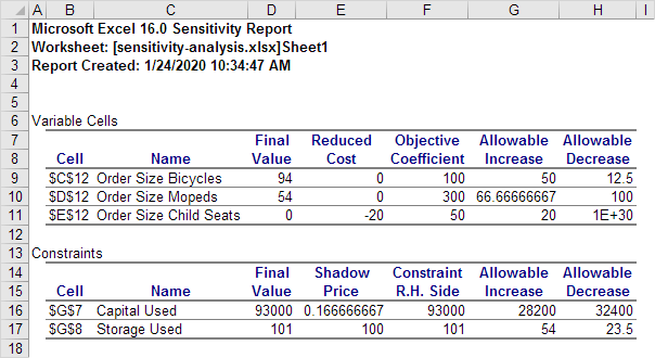 Sensitivity Analysis in Excel