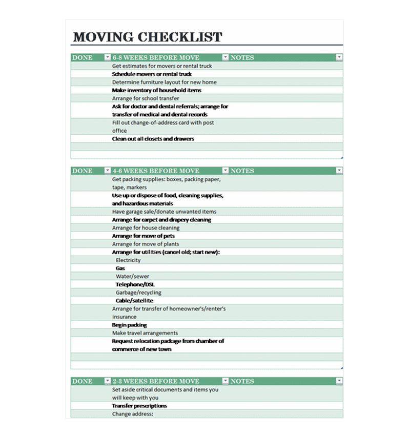 Printable Excel Checklist For Moving Into A New Home