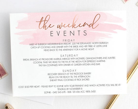Wedding Itinerary Template For Bridal Party